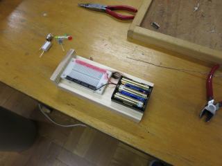 これが、実験セット。手元に一つ置いておけば授業以外にちょっとした回路を試すのにもいいかと思う。