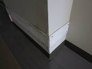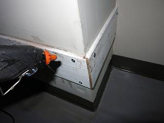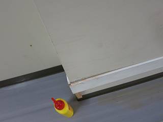 台車で多量の文書を運ぶ機会はよくあるので、またぶつかってしまうことが考えられるので、木の板をガードのように貼ることにした。