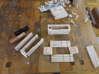 しかし,木目はスギの方が綺麗なので,もう一度スギで作るつもり。なかなか最終形にはたどり着かない。