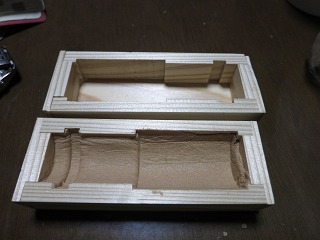 スギ材のあまりで,枠を作る。予備の単3電池をいれておく部分も考えてみた。