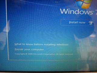 インストールし直そうと思ったけれど,下の方に Repair your computerの文字があったので,これをクリック。