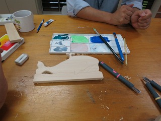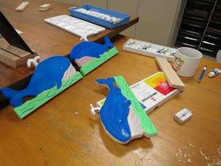 美術の主事にお願いして,鯨の絵を描いてもらった。何の資料もなくぱっぱと書いたのがこの絵。