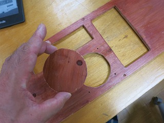 背板は木ネジだけで留めていたので外してけがきをした後,糸鋸でくりぬく。