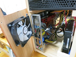 確認後,ネジ止めして完成。一番前の12cmファンで吸い込み真ん中にCPUファン,出口は今回の8cmファンと,上部の電源ファン。