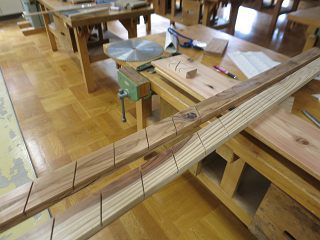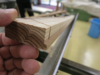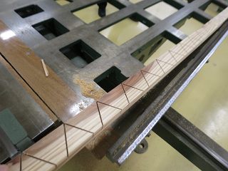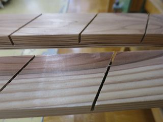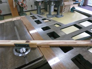 まずは,マイタゲージを30度にして溝を切り込む。