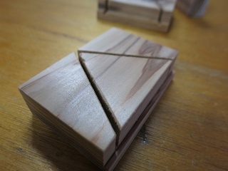 逆方向からも切り込んで,60度の二等辺三角形にする。