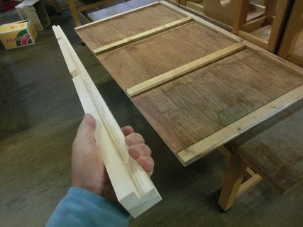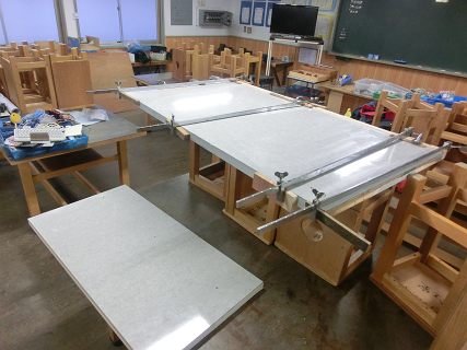 これも,前の学校で廃棄しようとしていたのをもらっておいた化粧合板を使ってつくることにした。