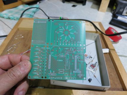 業者さんから預かったココナッツ基板。実は今までお願いしていた基板屋さんが工場をたたんでしまったので,新しいところでもう一度同じものをつくったとのこと。