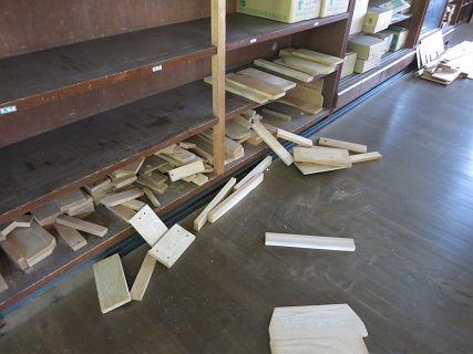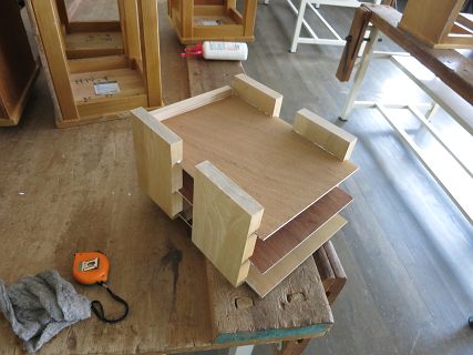 古い教材を分解した板が保管してあったので,プリント整理用の棚を作る。