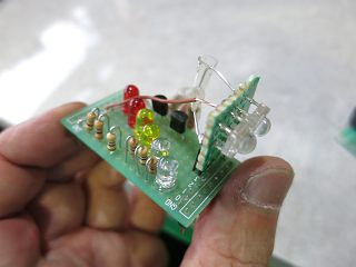 V3の設計時に組み込んであった2つのピンソケットを使って上向きの信号用LEDと前向きの照明用LEDという組み合わせにした。