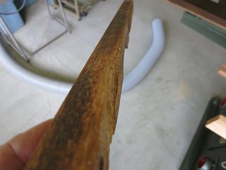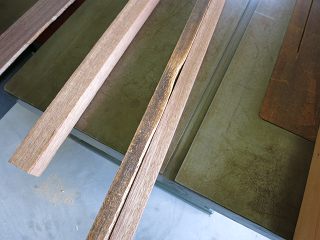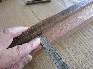 取り外したところ。上だけでなく横もかなり削れていた。この部分は反りが出にくいラワン材を使うことにした。