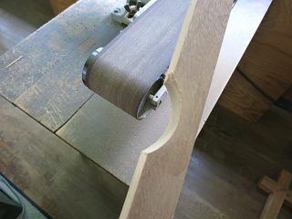 ボルトの頭に合わせて10mmのドリルで2段目の穴を開ける。中心は主軸が上がってきたときの逃げをベルトサンダーで作る。