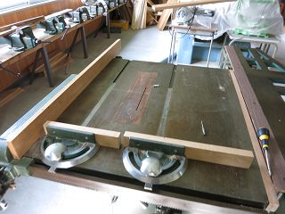 2つあったので、一つはテーブル上にノコ刃を出したときにぎりぎりになるようにして、もう一つは右側を長くして角度を付けたときに使えるようにした。