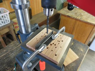 ボルトの頭を逃がすようにショートビットで座ぐりをする。