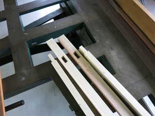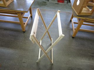 ほぞ組で枠を一つ作って、外側は板を取り付けてX型のスタンドにしてみた。