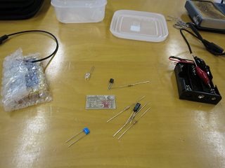 最初は電波の可視化実験装置。といっても、LEDにダイオードをはんだづけするだけ。
