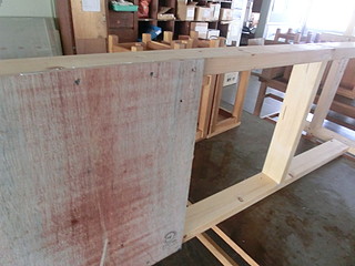 真ん中のぬき板には、ビデオ用のテーブルを取り付けた。