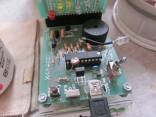 写真では見にくいけれどカラーLEDの外側に、赤外線LEDを追加してある。これは今までスピーカーを駆動していたPWM回路に接続している。