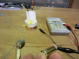 そこで、エナメル線を紙コップに50回巻いてみた。