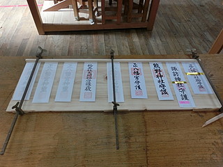 頂いたお札、全部で9つの神社がある。大きさもそれぞれだが、毎年同じ大きさだと思われる。