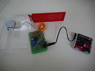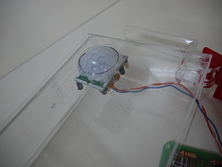 筐体は100円ショップで購入した「調味料(砂糖)入れ」全部中に入れてセットしたら人感センサーが反応しなかったので