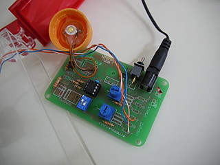 レンズ面だけを外に出して、ホットボンドで固定した。