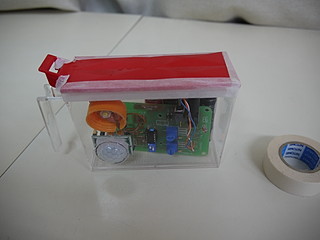 スイッチを入れた状態で蓋をしてマスキングテープで留める。