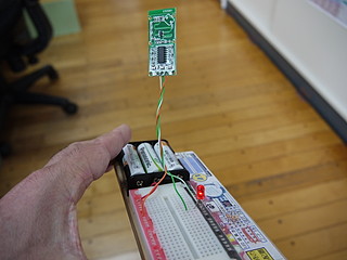信号出力に、信号用LEDを直結してみた。入力があるとLEDが点灯する。