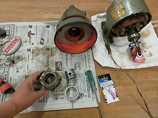モータがまわらないので、シリンダーを分解したら古いオイルで固まっていた。