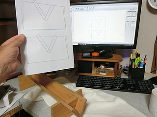 60度で枠ができるようにするのが肝心なので、型枠を花子で原寸大に作って印刷。