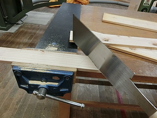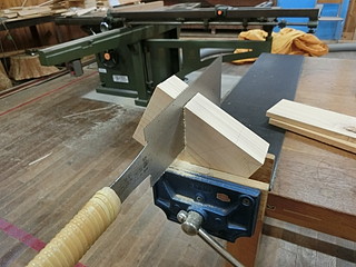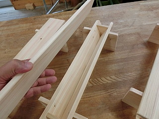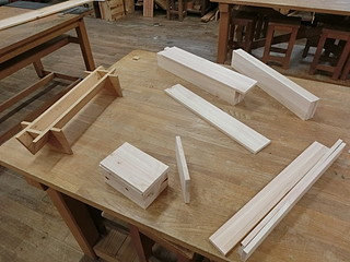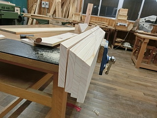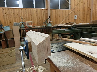 一つ借りてきて完全コピーすることにした。学有林のヒノキから節をよけて材料を切り出す。