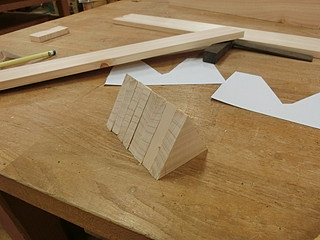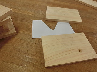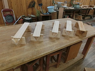 型を木に写して、切断する。今回は4つ作ったので、まとめて切った。