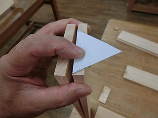 合わせる部分は、60度にするために、正三角形でけがきをする。