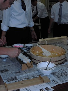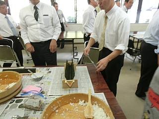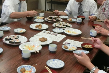 三角寿司を作って、お昼にすることにした。とはいっても研修時間は30分のみなので、お膳立ては地域の方にお願いした。