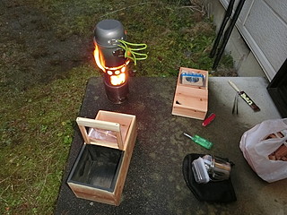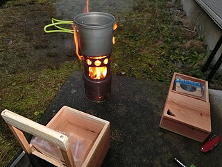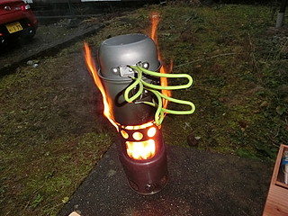 まずはお湯を沸かさなければ話しにならない。中国製のコンロ。2次燃焼するように空気の通り道が考えられた物。