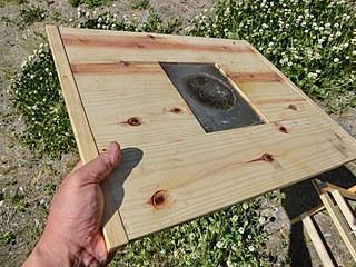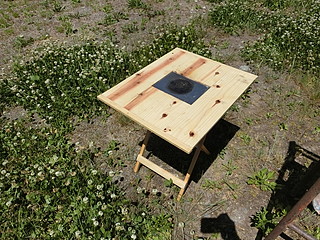 以前作った外で使うミニテーブルの脚だけれど、ロールテーブルを開いた状態で載せるよりは専用の天板をつけた方が