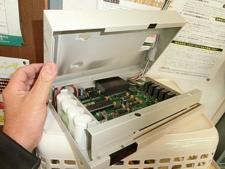 つなげたまま取り外して、バックアップ電池を外す。単2タイプくらいが4つ入っている大きさだった。