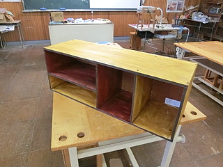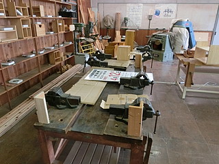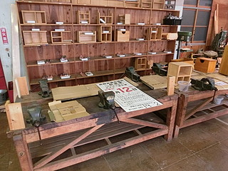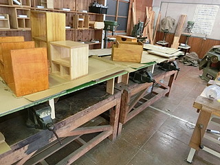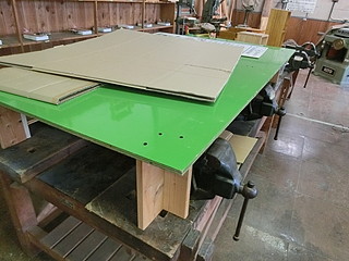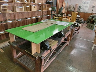 もう一つは木工室に持ち込まれていた金工室用の作業台。金工万力を使うことはあまりないので、平らな板で