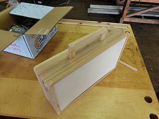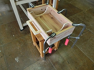 蓋はおかもちスタイルにして、薄い合板を差し込む形にした。取っ手もつけたので、持ち運びと管理が楽になるかなと思う。
