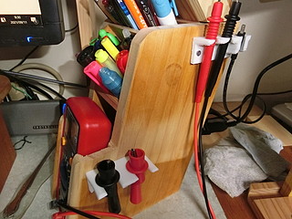 テスター用のリードは洗濯ばさみで保持していたが、3Dプリンタでホルダーを製作。