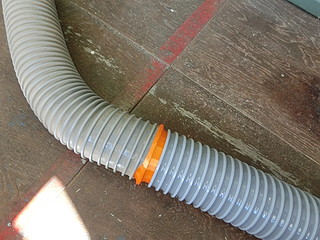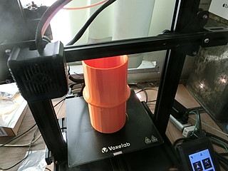 学校の集塵機のホースが古くなったので、新しく購入した。 とはいえ、古いものもまだ使えるので3Dプリンタでジョイントを製作した。 今まで出力した中で外形は一番大きい。24時間ほどかかった。 ジョイントの外形は100mm、最初は中央のリブを平らなリングにしたが、サポート材がたくさん必要になったので、なめらかな状態にした。 つないだ感じの止まり具合もちょうど良い感じ。 今回は7mの長さの物を購入。17000円ほどした。つなげることで広範囲の清掃ができるようにもなった。