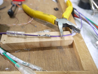カーステレオの方は、ただ配線が出ているだけなのではんだ付けした。(本来はギボシ端子を圧着して接続するのだけれど、他に転用することもないので安価に接続することに)