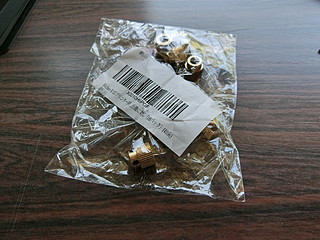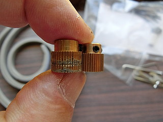そこで、エクストルーダ自体をアルミ製に変更した。1000円程度のものだが、今までより格段にしっかりしたものになった。しかし、やっぱり送りミスが出る。隣は同じものを購入した技術の業者さんから借りたものだが、新品だけあって調子が良い。比べながら考えた。