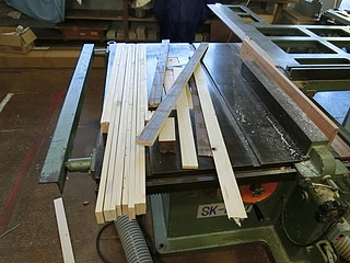 小学校では製材することができないので、近くの中学校で機械を借りて8mm厚で幅を45mmにしてきた。