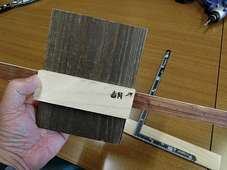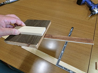 基準面は丸ノコで90°に切断してあげるために、ガイドを作る。いわゆるマイタゲージ。