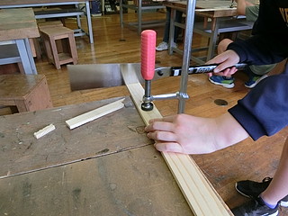 児童にとっては思い出のある教室ということで、壊してでた材料を使って工作をすることにした。