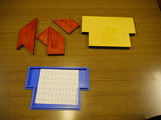 Tーパズルを作ることにしたので、以前の設計図を元に厚紙で型紙を作る。レーザー加工機で切り抜いて作った。