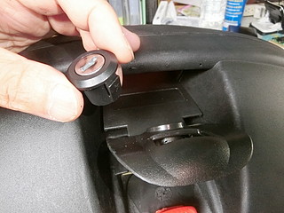 リアボックスの鍵が調子悪くて、シリンダーがきちんと解放されない。奥まで入らないのが原因なので、本当はパーツを交換したかったが、ヤフオクで買った中古品でノーブランド品なので部品も手に入らなかった。