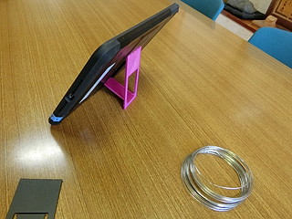 学校で導入されている児童の一人一台のタブレット端末はiPad。 ケースに入っていてありがたいのだけれど、この足を壊してしまう児童もいる。 3Dプリンタで出力出来るようにしておけば、代替品を作れるので設計してみた。 ヒンジの部分は、ステンレスワイヤーを通して同じように作製。 薄いこともあり、それほど時間がかからず出力出来る。 これで、壊してしまっても学校で修理することができるけれど、実際には本体側のヒンジ固定部分が割れるケースが多かったということが後で判明した。