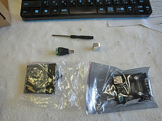 あけたところ、電源はコネクタも附属していた。本体は自分で組み立てる仕様。